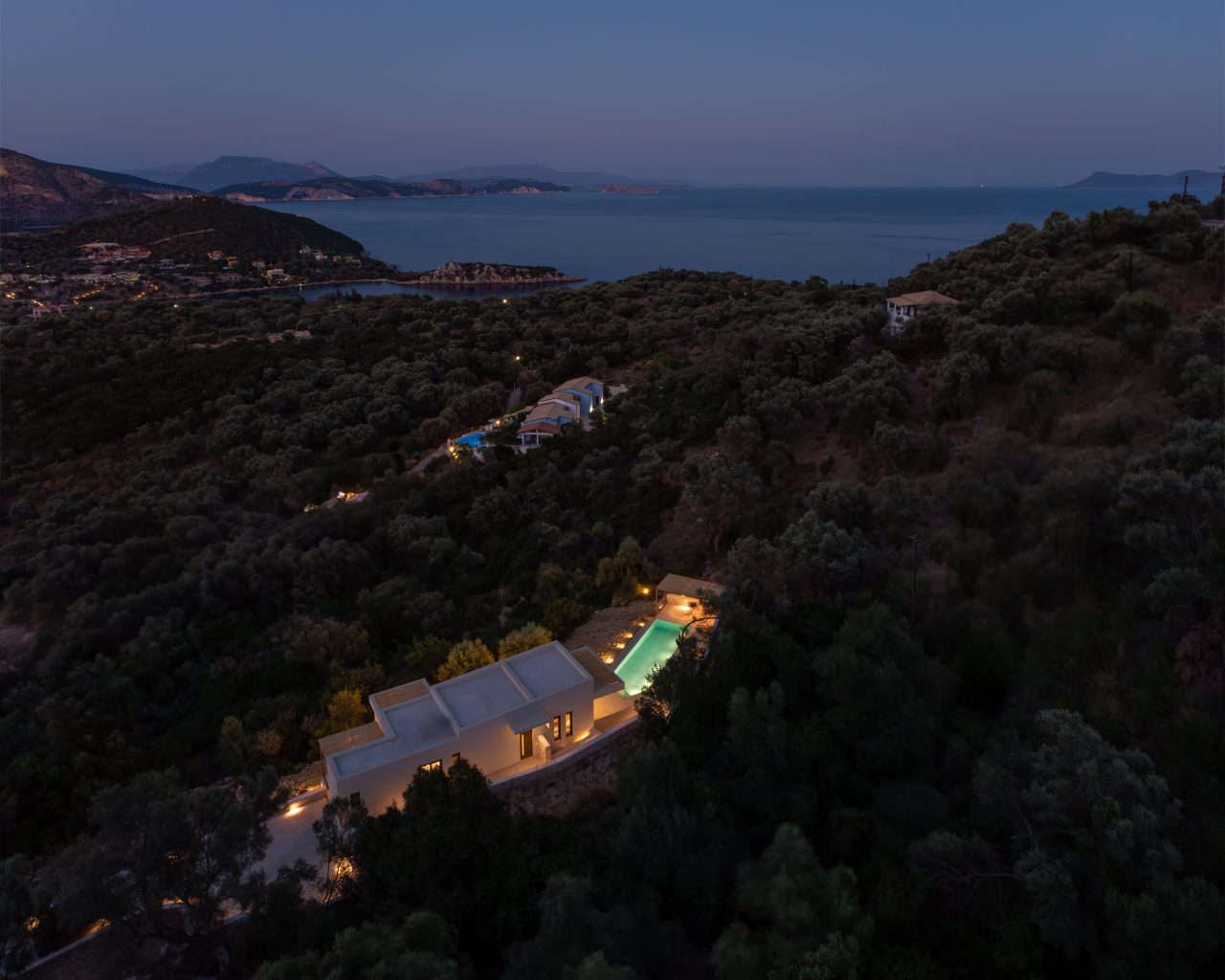Located on the lush green mountainside and engulfed naturally amongst the olive groves of Sivota Bay is our brand new, Villa Eptanisa. This private property oozes calmness and its design blends naturally with its surrounding environment.